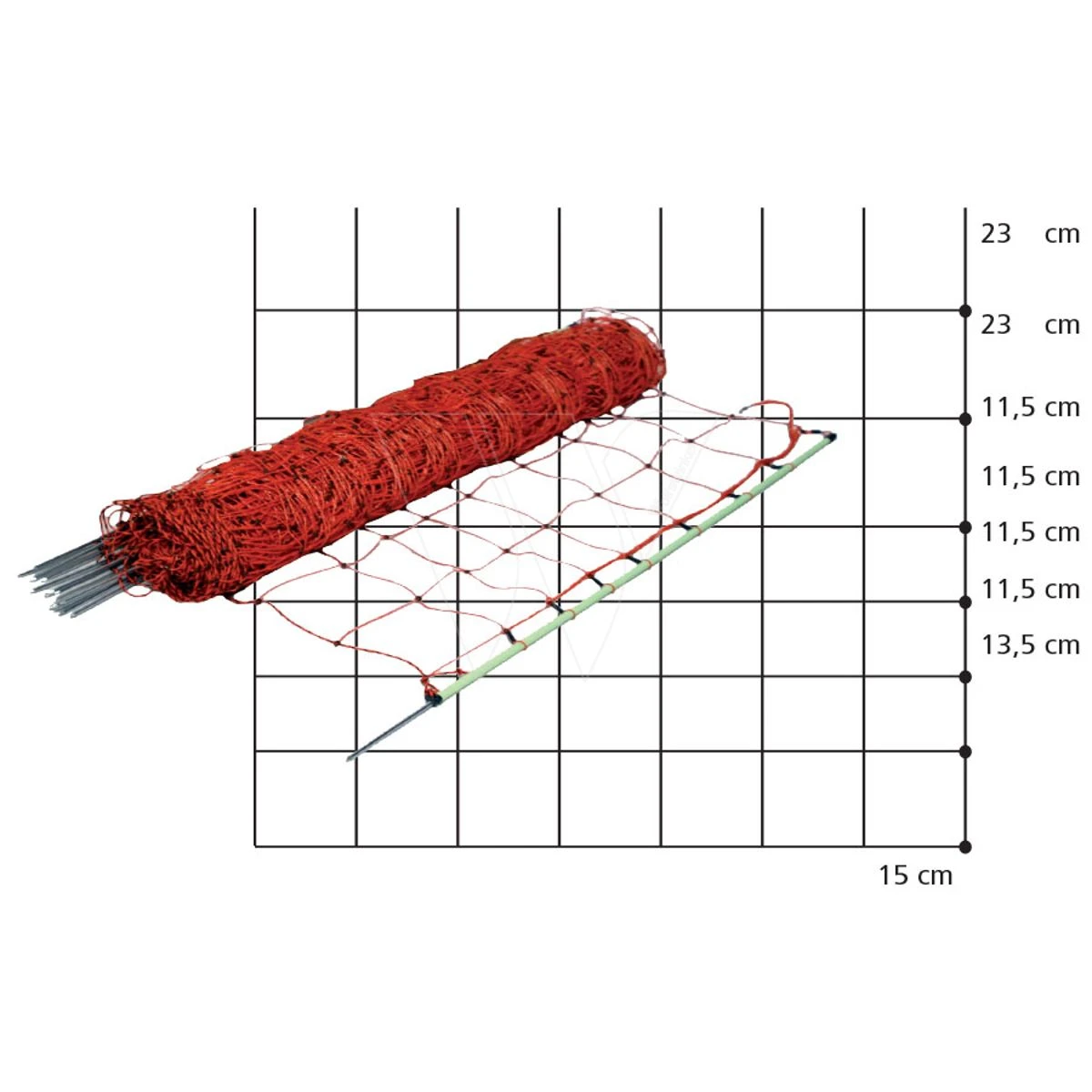 - Compleet afrasteringsnet inclusief 14 palen en 8 horizontale draden